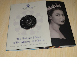 This year, Her Majesty, will celebrate her Platinum Jubilee. She is the first British monarch to reign for 70 years, something of an achievement. Not surprisingly the Royal Mint have issued lovely limited edition coins to mark the occasion. This one is the uncirculated £5 coin.
